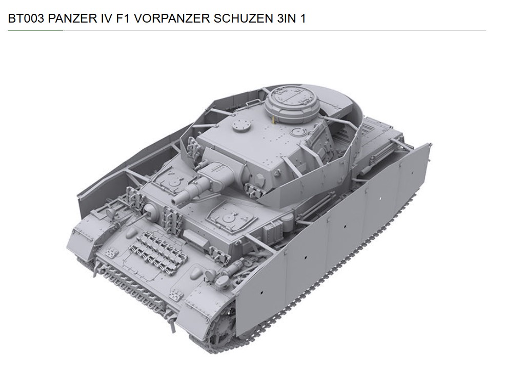 The Border Model BT‑003 1/35 Panzer IV Ausf. F1 Vorpanzer & Schürzen (3‑in‑1) plastic model kit offers exceptional versatility and detail, allowing modelers to build multiple historically accurate configurations of the Panzer IV during its early‑ to mid‑war service in World War II.