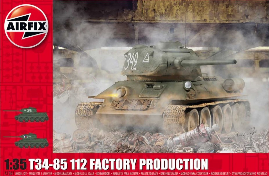 1/35 T‑34‑85 112 Factory Production Soviet Tank - Airfix A1361 Manufacturer: AIRFIX Availability: In stock SKU: AIRFIX A1361 This 1/35 scale Airfix T‑34‑85 112 Factory Production model kit delivers an accurate and historically faithful Soviet tank build, perfect for Eastern Front WWII dioramas and collections. Old price: $49.99 Price: $36.00 Qty: Add to cart Custom wishlist OK Add to wishlist Email a friend Shares: The Airfix T‑34‑85 112 Factory Production kit recreates one of the most important Soviet tanks of World War II in accurate 1/35 scale. Featuring factory‑specific details, correct turret shape, and robust armor lines, this model reflects a key late‑war production variant. Ideal for Eastern Front dioramas and WWII armor collections.\n\nHighlights: Highly detailed 1/35 scale Soviet medium tank Accurate 112 Factory T‑34‑85 production details Precision‑molded plastic parts Excellent representation of late‑war Red Army armor\n\nDetails: Manufacturer: Airfix SKU: A1361 Scale: 1/35 Material: Plastic Skill Level: Intermediate Products specifications Attribute name Attribute value Country Russia Side Allies Group Tanks Used By Russia Scale 1/35 Model Production Year 2019 Product tags Russia (259) , TanksAllies (4)