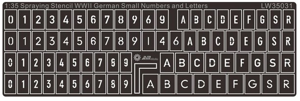 1/35 WWII German Turret Numbers & Letters Small – Alliance Model Works LW35031 Manufacturer: Alliance Model Works Availability: In stock SKU: Alliance Model Works LW35031 This 1/35 scale small German turret number decal set from Alliance Model Works is perfect for subtle vehicle markings, offering precise typography and excellent print quality for WWII armor models. Old price: $26.99 Price: $18.00 Qty: Add to cart Custom wishlist OK Add to wishlist Email a friend Shares: The Alliance Model Works WWII German Turret Numbers & Letters (Small) decal set delivers finely scaled markings for light vehicles, command tanks, and subtle numbering applications in 1/35 scale. Designed with precise typography and clean print quality, this set allows modelers to add understated yet authentic German markings.\n\nHighlights: Small‑size German turret numbers and letters Precise WWII German fonts Fine, clean decal printing Ideal for subtle or compact markings\n\nDetails: Manufacturer: Alliance Model Works SKU: LW35031 Scale: 1/35 Material: Decal film Skill Level: Beginner to Advanced Products specifications Attribute name Attribute value Scale 1/35