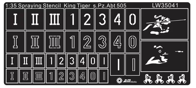1/35 WWII German King Tiger s.Pz.Abt.505 Decals – Alliance Model Works LW35041 Manufacturer: Alliance Model Works Availability: In stock SKU: Alliance Model Works LW35041 This 1/35 scale King Tiger decal set from Alliance Model Works provides historically accurate markings for schwere Panzer‑Abteilung 505, making it ideal for authentic late‑war German heavy tank projects. Old price: $16.99 Price: $11.00 Qty: Add to cart Custom wishlist OK Add to wishlist Email a friend Shares: The Alliance Model Works WWII German King Tiger decal set for schwere Panzer‑Abteilung 505 provides historically accurate markings for Königstiger tanks in 1/35 scale. With carefully researched unit symbols, turret numbers, and crosses, this set allows modelers to accurately depict late‑war heavy tanks with exceptional clarity and scale correctness.\n\nHighlights: Accurate King Tiger unit markings s.Pz.Abt.505 specific decals Crisp, high‑resolution printing Ideal for late‑war German heavy armor builds\n\nDetails: Manufacturer: Alliance Model Works SKU: LW35041 Scale: 1/35 Material: Decal film Skill Level: Intermediate to Advanced Products specifications Attribute name Attribute value Scale 1/35