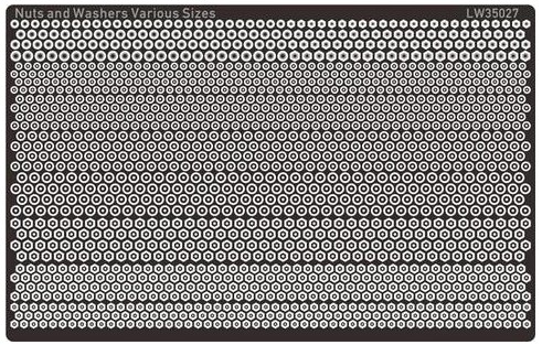 1/35 Nuts & Washers Various Sizes – Alliance Model Works LW35027 Manufacturer: Alliance Model Works Availability: In stock SKU: Alliance Model Works LW35027 This 1/35 scale nuts and washers set from Alliance Model Works allows builders to add refined mechanical detail to armor kits, increasing realism and accuracy across multiple applications. Old price: $14.99 Price: $9.00 Qty: Add to cart Custom wishlist OK Add to wishlist Email a friend Shares: The Alliance Model Works nuts and washers set offers a complete assortment of precision‑cast components for accurate mechanical detailing in 1/35 scale. Perfect for replacing simplified kit detail, this set enhances suspension units, armor plating, and structural elements on vehicle and artillery models.\n\nHighlights: Assorted nuts and washers Multiple sizes for maximum flexibility Enhances structural realism Ideal for advanced modeling projects\n\nDetails: Manufacturer: Alliance Model Works SKU: LW35027 Scale: 1/35 Material: Resin Skill Level: Intermediate to Advanced Products specifications Attribute name Attribute value Scale 1/35 Model Production Year 2014