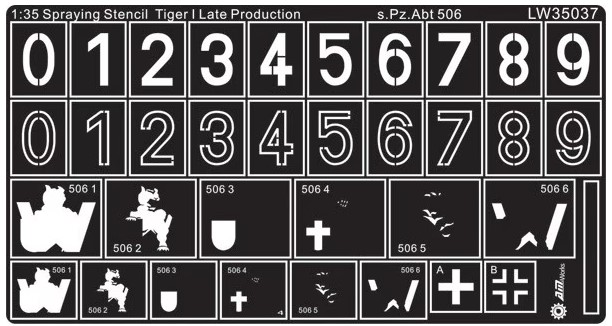 1/35 WWII German Tiger I s.Pz.Abt.506 Decals – Alliance Model Works LW35037 Manufacturer: Alliance Model Works Availability: In stock SKU: Alliance Model Works LW35037 This 1/35 scale Tiger I decal set from Alliance Model Works accurately represents markings used by schwere Panzer‑Abteilung 506, making it ideal for historically precise WWII German armor modeling projects. Old price: $23.99 Price: $15.00 Qty: Add to cart Custom wishlist OK Add to wishlist Email a friend Shares: The Alliance Model Works WWII German Tiger I decal set for schwere Panzer‑Abteilung 506 provides historically researched markings in 1/35 scale. Designed for accurate replication of Tiger I heavy tanks, this set includes crisp crosses, turret numbers, and unit identifiers printed with excellent clarity and scale accuracy.\n\nHighlights: Historically accurate Tiger I unit markings s.Pz.Abt.506 specific decals Sharp, high‑definition print quality Ideal for authentic WWII German armor builds\n\nDetails: Manufacturer: Alliance Model Works SKU: LW35037 Scale: 1/35 Material: Decal film Skill Level: Intermediate to Advanced Products specifications Attribute name Attribute value Scale 1/35