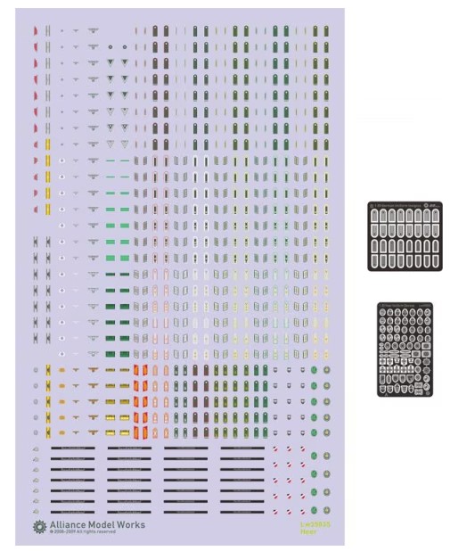 1/35 German WWII Wehrmacht Uniform Insignia & Devices – Alliance Model Works LW35035 Manufacturer: Alliance Model Works Availability: In stock SKU: Alliance Model Works LW35035 This 1/35 scale Wehrmacht uniform insignia set from Alliance Model Works adds finely detailed cap badges and uniform devices, greatly improving realism on WWII German figures and crew models. Old price: $26.99 Price: $18.00 Qty: Add to cart Custom wishlist OK Add to wishlist Email a friend Shares: The Alliance Model Works German WWII Wehrmacht Uniform Insignia and Devices set provides finely detailed accessories for figure modelers working in 1/35 scale. Featuring accurate cap insignia, rank devices, and uniform details, this set significantly enhances the realism of German crew and infantry figures.\n\nHighlights: Accurate Wehrmacht uniform insignia Fine surface detailing for figures Enhances realism of crew models Designed for WWII German figures\n\nDetails: Manufacturer: Alliance Model Works SKU: LW35035 Scale: 1/35 Material: Resin / photo‑etched details Skill Level: Intermediate to Advanced Products specifications Attribute name Attribute value Scale 1/35