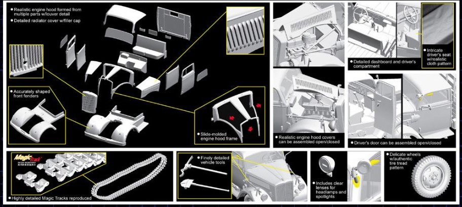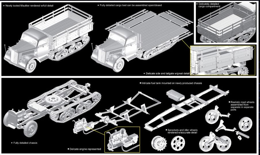 1/35 Sd.Kfz.3a Maultier Half‑Track – Dragon 6761 Manufacturer: Dragon Models Availability: In stock SKU: Dragon Models 6761 This Dragon Maultier kit accurately recreates an important German logistics vehicle used on muddy Eastern Front roads. Old price: $74.99 Price: $52.00 Qty: Add to cart Custom wishlist OK Add to wishlist Email a friend Shares: Dragon Sd.Kfz.3a Maultier is a 1/35 scale plastic model kit depicting the German truck converted to half‑track configuration for improved cross‑country mobility. The kit features detailed suspension and cargo bed.\n\nHighlights: 1/35 scale Sd.Kfz.3a Maultier German half‑track supply vehicle Improved terrain mobility design Detailed chassis and tracks\n\nDetails: Manufacturer: Dragon Models SKU: 6761 Scale: 1/35 Type: Plastic Model Kit Era: WWII Skill Level: Advanced Products specifications Attribute name Attribute value Country Germany Sub Group Half-Track Group Transport Wars WWII Side Axis Vehicle Common Name Maultier, Opel, Opel Blitz 3.6 Vehicle Type Sd.Kfz. 3a Used By Germany Scale 1/35 Model Production Year 2012 Product tags Axis (476) , Germany (662) , WWII (466) , Half-Track (21) , Transport (150) , Sd.Kfz. 3a (1) , Opel Blitz 3.6 (2) , Opel (2) , Maultier (1)