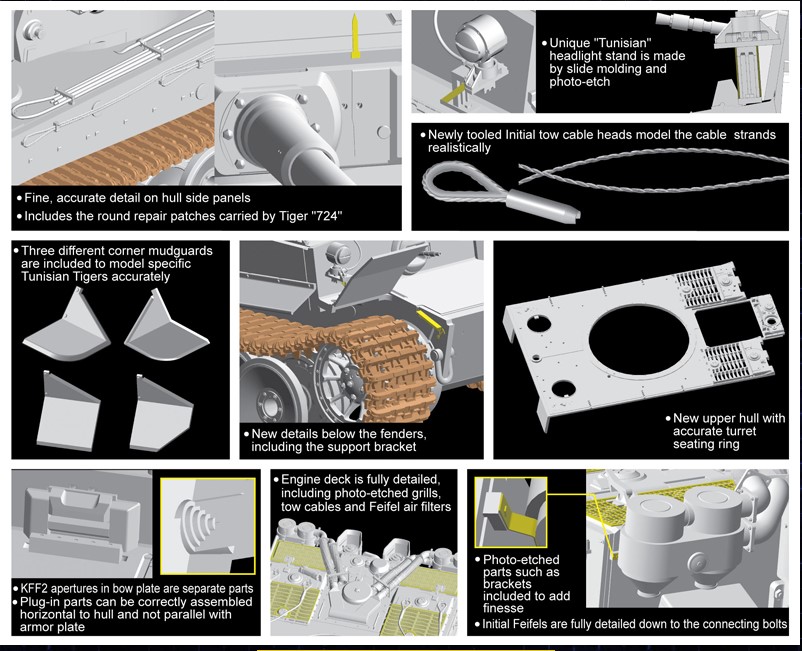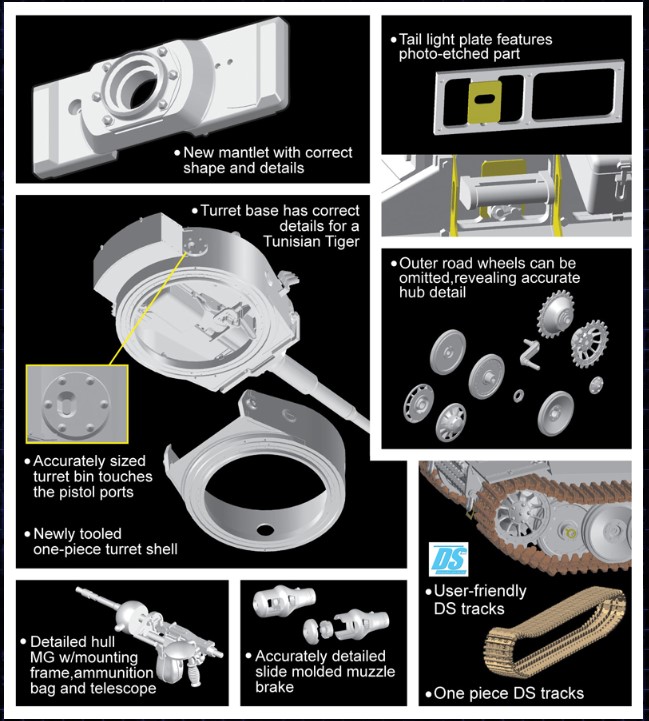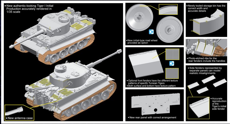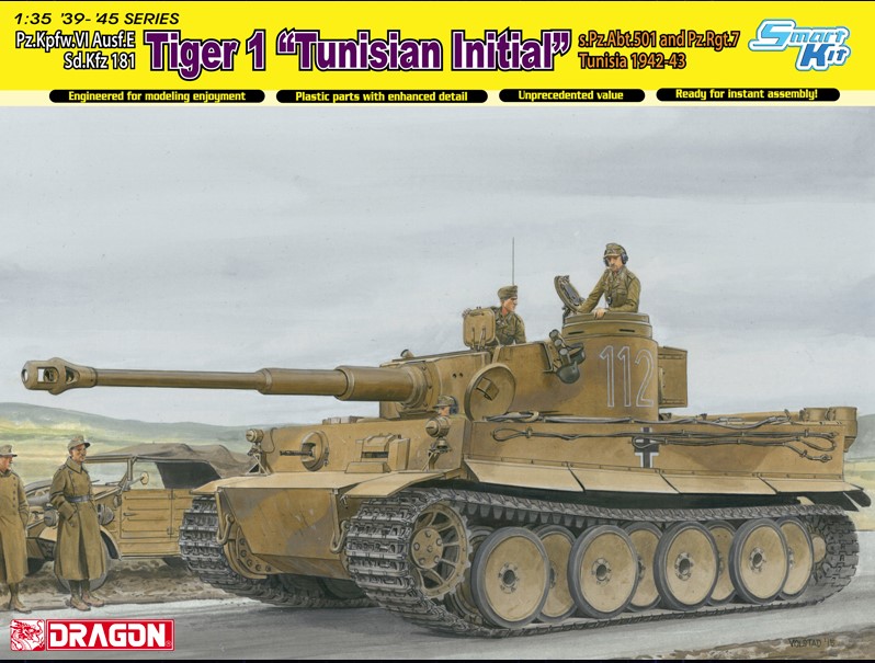 1/35 Tiger I Initial Production Tunisia 1942/43 – Dragon 6608 Manufacturer: Dragon Models Availability: In stock SKU: Dragon Models 6608 This Dragon Tiger kit accurately portrays early Tigers deployed in the North African theater. Old price: $110.99 Price: $90.00 Qty: Add to cart Custom wishlist OK Add to wishlist Email a friend Shares: Dragon Tiger I Initial Production Tunisia depicts early Tigers of schwere Panzer‑Abteilung 501 in North Africa. This 1/35 scale kit includes early features, tropical fittings, and accurate engine deck details.\n\nHighlights: 1/35 scale Tiger I Initial North Africa Tunisia configuration s.Pz.Abt.501 markings Early‑production features\n\nDetails: Manufacturer: Dragon Models SKU: 6608 Scale: 1/35 Type: Plastic Model Kit Era: WWII Skill Level: Advanced Products specifications Attribute name Attribute value Country Germany Wars Hungarian Revolution of 1956, Korean War, Prague Spring, Six-Day War, South Ossetia war (1991–1992), WWII Side Axis Group Tanks Used By China, Cuba, Czechoslovakia, East Germany, Germany, Hungary, North Korea, Romania, Russia, South Ossetia Scale 1/35 Model Production Year 2024 Product tags Germany (662) , WWII (466) , Russia (259) , Hungary (108) , Romania (118) , East Germany (6) , Cuba (28) , Czechoslovakia (28) , North Korea (8) , South Ossetia (3) , TanksAxis (12)
