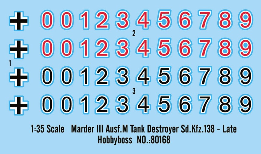 1/35 Marder III Ausf.M Late Production – HobbyBoss 80168 Manufacturer: HobbyBoss Availability: In stock SKU: Hobby Boss 80168 This HobbyBoss Marder III Ausf.M kit accurately represents a key late‑war German tank destroyer with refined battlefield design. Old price: $72.99 Price: $36.00 Qty: Add to cart Custom wishlist OK Add to wishlist Email a friend Shares: HobbyBoss Marder III Ausf.M Late Production is a 1/35 scale plastic model kit depicting the final and most refined variant of Germany’s Marder III tank destroyer. Based on the Panzer 38(t) chassis, the Ausf.M featured improved fighting compartment layout and better protection.\n\nHighlights: 1/35 scale Marder III tank destroyer Ausf.M late‑production configuration 7.5cm PaK gun armament Accurate open fighting compartment\n\nDetails: Manufacturer: HobbyBoss SKU: 80168 Scale: 1/35 Type: Plastic Model Kit Era: WWII Skill Level: Advanced Products specifications Attribute name Attribute value Country Germany Sub Group Tank Destroyer Group AFV Main Weapon 7.62 cm PaK 36 Wars Anglo-Iraqi War, Austrian Civil War, Chinese Civil War, Greco-Italian War, Invasion of Albania, Second Italo-Abyssinian War, Second Sino-Japanese War, Slovak-Hungarian War, Spanish Civil War, WWII Side Axis Vehicle Common Name Marder III Vehicle Type Sd.Kfz.138 Used By Afghanistan, Albania, Austria, Bulgaria, China, Croatia, Germany, Hungary, Italy, Nationalist Spain Scale 1/35 Model Production Year 2017 Product tags Axis (476) , Germany (662) , WWII (466) , Croatia (47) , Hungary (108) , Tank Destroyer (23) , Bulgaria (81) , AFV (155) , Italy (91) , Austria (3) , Albania (2) , Sd.Kfz.138 (1) , Nationalist Spain (1) , Afghanistan (6) , Marder III7.62 cm PaK 36 (1)