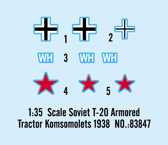 1/35 Soviet T‑20 Komsomolets Armored Tractor 1938 – HobbyBoss 83847 Manufacturer: HobbyBoss Availability: In stock SKU: Hobby Boss 83847 This HobbyBoss T‑20 kit captures the early configuration of a vital Soviet support vehicle. Old price: $47.99 Price: $32.00 Qty: Add to cart Custom wishlist OK Add to wishlist Email a friend Shares: HobbyBoss Soviet T‑20 Komsomolets 1938 is a 1/35 scale plastic model kit depicting the early version of the armored artillery tractor used to tow anti‑tank weapons.\n\nHighlights: 1/35 scale T‑20 Komsomolets tractor 1938 early‑production version Soviet artillery support vehicle Detailed engine and crew area\n\nDetails: Manufacturer: HobbyBoss SKU: 83847 Scale: 1/35 Type: Plastic Model Kit Era: WWII Skill Level: Intermediate Products specifications Attribute name Attribute value Country Russia Sub Group Tractor Group Transport Main Weapon 7.62 mm DT machine gun Wars 1959 Cuban Revolution, Chinese Civil War, Darul Islam rebellion, First Indochina War, Football War, Hukbalahap Rebellion, Indonesian National Revolution, Indo-Pakistani War of 1947–1948, Indo-Pakistani War of 1965, Korean War, Nicaraguan Revolution, Permesta rebellion, Portuguese Colonial War, PRRI rebellion, Salvadoran Civil War, South Maluku rebellion, WWII, 3 September Movement Side Allies Vehicle Common Name T-2 Vehicle Type T-2 Komsomolets Used By America, Brazil, Britain, China, Commonwealth, Cuba, El Salvador, France, Germany, Indonesia, Japan, Nicaragua, Pakistan, Philippines, Portugal, Russia, Yugoslavia Scale 1/35 Model Production Year 2015 Product tags Germany (662) , WWII (466) , America (176) , Allies (309) , Russia (259) , Britain (171) , Yugoslavia (30) , Cuba (28) , France (69) , Commonwealth (35) , Transport (150) , Indonesia (13) , Japan (16) , Tractor (13) , Pakistan (10) , Portugal (13) , El Salvador (10) , Phillippines (10) , Nicaragua (10) , Brazil (10) , T-2 Komsomolets (2) , T-27.62 mm DT machine gun (2)