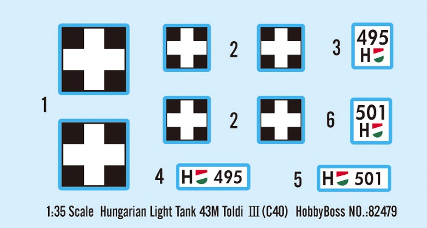 1/35 Hungarian Light Tank 43M Toldi III (C40) – HobbyBoss 82479 Manufacturer: HobbyBoss Availability: In stock SKU: Hobby Boss 82479 This HobbyBoss Toldi III kit portrays a rare and ambitious late‑war Hungarian light tank design. Old price: $64.99 Price: $45.00 Qty: Add to cart Custom wishlist OK Add to wishlist Email a friend Shares: HobbyBoss Hungarian Light Tank 43M Toldi III (C40) is a 1/35 scale plastic model kit depicting the final planned evolution of the Toldi series with heavier armament.\n\nHighlights: 1/35 scale Toldi III light tank Final Toldi development Enhanced armament concept Rare Hungarian subject\n\nDetails: Manufacturer: HobbyBoss SKU: 82479 Scale: 1/35 Type: Plastic Model Kit Era: WWII Skill Level: Advanced Products specifications Attribute name Attribute value Country Hungary Sub Group Light Tank Wars WWII Side Axis Group Tanks Main Weapon 4 mm 37/42M gun Vehicle Common Name 38M Toldi III (C4) Vehicle Type 38M Toldi III (C4) Used By Germany, Hungary Scale 1/35 Model Production Year 2013 Product tags Axis (476) , Germany (662) , WWII (466) , Light Tank (71) , Hungary (108) , Tanks (220) , 38M Toldi III (C4) (1) , 38M Toldi III (C4)4 mm 37/42M gun (1)