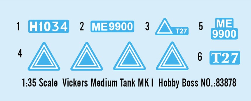 1/35 Vickers Medium Tank Mk.I – HobbyBoss 83878 Manufacturer: HobbyBoss Availability: In stock SKU: Hobby Boss 83878 This HobbyBoss Vickers Mk.I kit showcases important British armor development. Old price: $69.99 Price: $55.00 Qty: Add to cart Custom wishlist OK Add to wishlist Email a friend Shares: HobbyBoss Vickers Medium Tank Mk.I is a 1/35 scale plastic model kit depicting a British interwar medium tank design that influenced later armored doctrine.\n\nHighlights: 1/35 scale Vickers Mk.I British interwar medium tank Multi‑turret design influences Accurate early tank modeling\n\nDetails: Manufacturer: HobbyBoss SKU: 83878 Scale: 1/35 Type: Plastic Model Kit Era: Interwar Skill Level: Advanced Products specifications Attribute name Attribute value Country Britain Sub Group Medium Tank Main Weapon QF 3 pounder gun (47 mm) Wars 1959 Cuban Revolution, Chinese Civil War, Darul Islam rebellion, First Indochina War, Football War, Hukbalahap Rebellion, Indonesian National Revolution, Indo-Pakistani War of 1947–1948, Indo-Pakistani War of 1965, Korean War, Nicaraguan Revolution, Permesta rebellion, Portuguese Colonial War, PRRI rebellion, Salvadoran Civil War, South Maluku rebellion, WWII, 3 September Movement Side Allies Vehicle Common Name Vickers Medium Vehicle Type Vickers Medium MK I Group Tanks Used By America, Brazil, Britain, China, Commonwealth, Cuba, El Salvador, France, Germany, Indonesia, Japan, Nicaragua, Pakistan, Philippines, Portugal, Russia, Yugoslavia Scale 1/35 Model Production Year 2016 Product tags Germany (662) , WWII (466) , America (176) , Medium Tank (68) , Allies (309) , Russia (259) , Britain (171) , Yugoslavia (30) , Cuba (28) , France (69) , Commonwealth (35) , Indonesia (13) , Japan (16) , Pakistan (10) , Portugal (13) , El Salvador (10) , Phillippines (10) , Nicaragua (10) , Brazil (10) , Vickers Medium MK I (1) , Tanks (220) , Vickers MediumQF 3 pounder gun (47 mm) (2)
