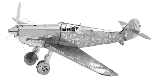 Messerschmitt Bf 109 Metal Model Kit – Metal Earth MMS118 Manufacturer: Fascinations Availability: In stock SKU: Fascinations-Metal Earth MMS118 This Metal Earth Bf 109 kit provides a realistic metallic replica of Germany’s most widely used WWII fighter. Old price: $19.99 Price: $7.00 Qty: Add to cart Custom wishlist OK Add to wishlist Email a friend Shares: Metal Earth Messerschmitt Bf 109 is a laser‑cut stainless‑steel model kit representing Germany’s primary WWII fighter aircraft. The etched metal sheets assemble into a compact, high‑detail display model using tab‑and‑slot construction.\n\nHighlights: Laser‑cut metal WWII aircraft Messerschmitt Bf 109 fighter No glue required Finely etched surface detail\n\nDetails: Manufacturer: Fascinations (Metal Earth) SKU: MMS118 Type: Metal Model Kit Era: World War II Skill Level: Intermediate Products specifications Attribute name Attribute value Country Germany Side Axis Used By Germany Product tags Axis (476) , Germany (662)